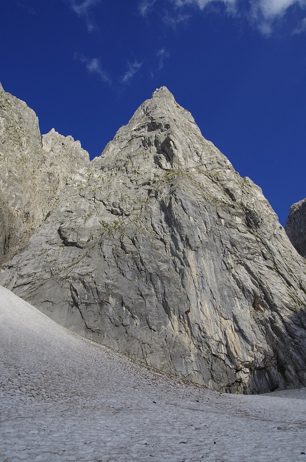 Der Schneehaufen am Wandfuß war um ganze 40m geschmolzen.